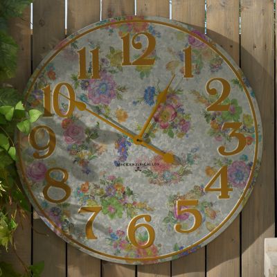Sync your schedule to MacKenzie-Childs time with the Flower Market® Outdoor Wall Clock. Made of galvanized metal, it’s decorated with our Flower Market pattern, and finished with copper-painted numbers and hands. Hang outdoors in a protected area or indoors, too.