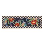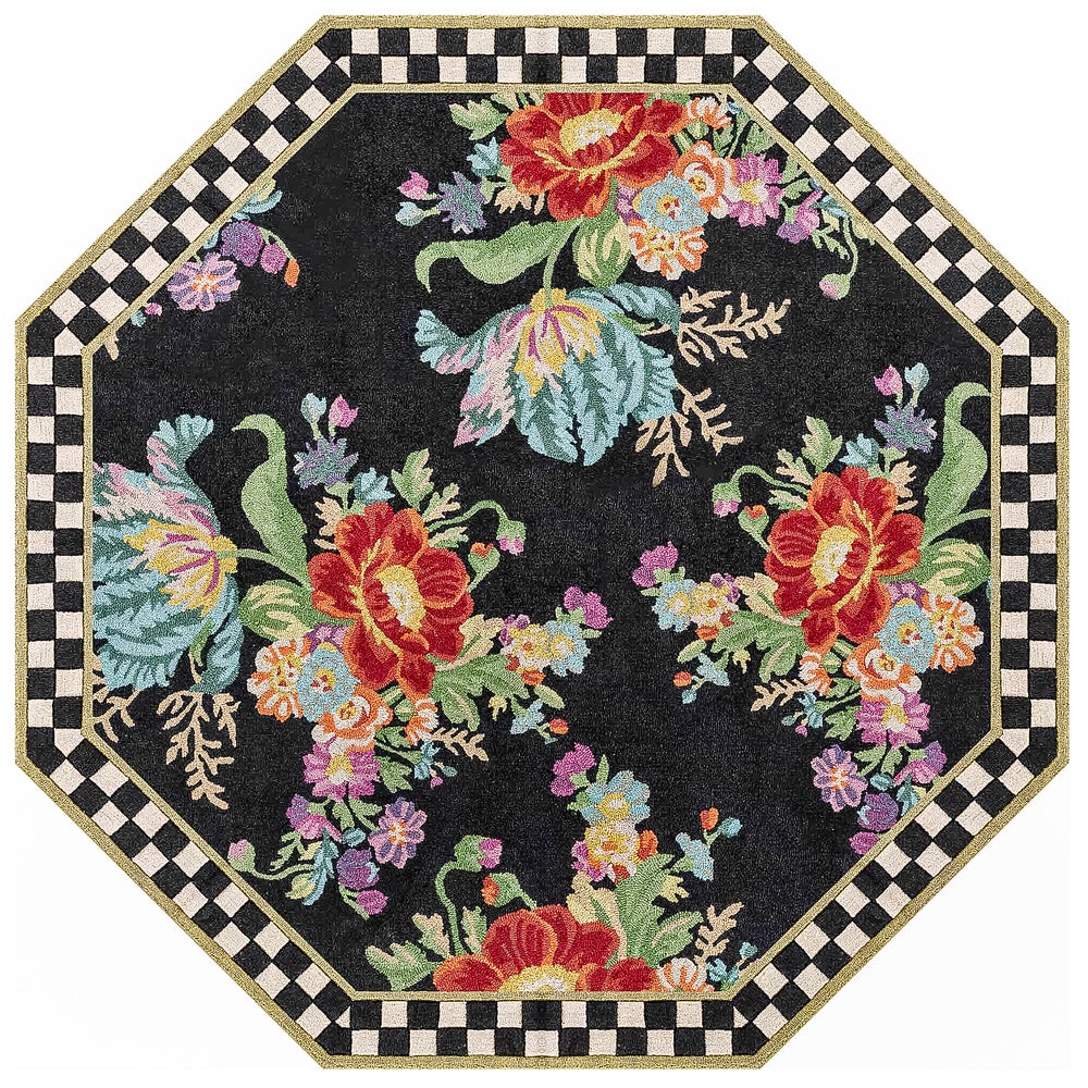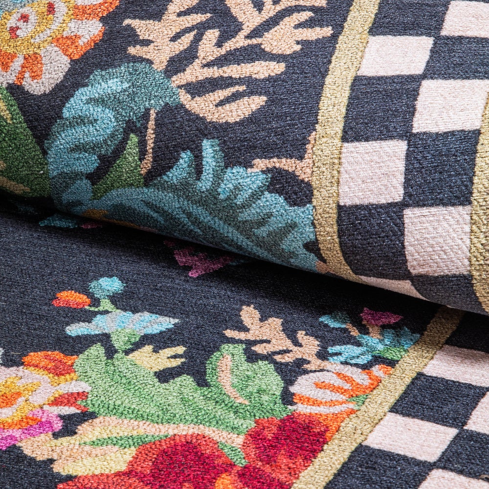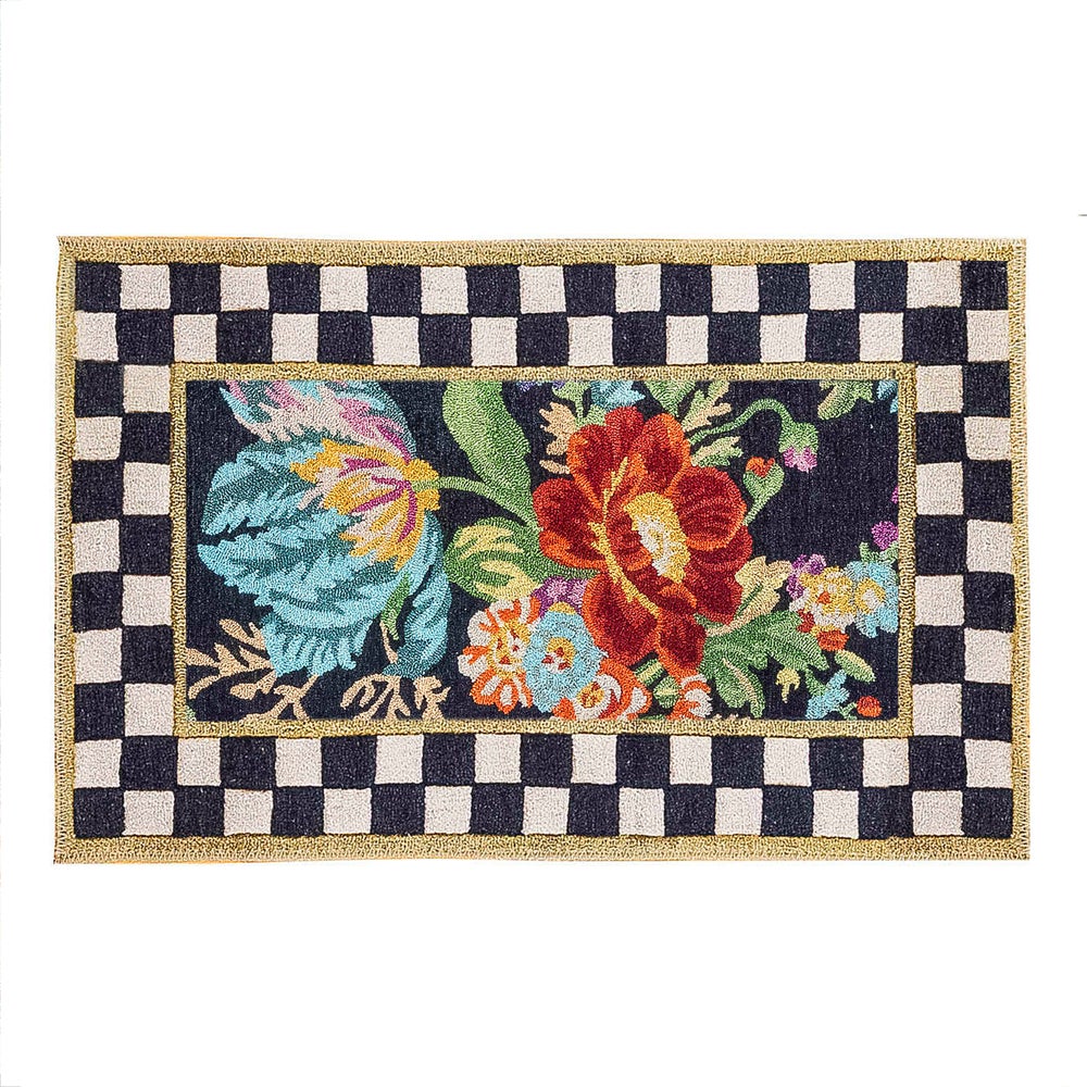 The Flower Market Washable Rug updates a classic MacKenzie-Childs rug design in woven and printed polyester that can be cleaned in your home washing machine.