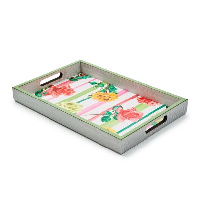Make your tabletop bloom with the pop art florals of our Garden Gala Serving Tray. Crafted with durable wood construction, decorated with hand-applied transfers, and finished with a hand-painted edge. Pair with other pieces from our Garden Gala collection for a tabletop that blossoms all year long!