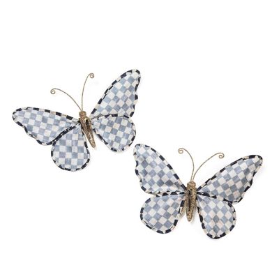 Add delightful dimension and a bit of glam to a Christmas tree or wreath with this set of two butterfly clips, featuring Courtly Check® wings and embellished with glittered accents.