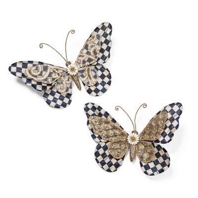 Add delightful dimension and a bit of glam to a Christmas tree or wreath with this set of two butterfly clips, featuring Courtly Check® wings and embellished with glittered accents.