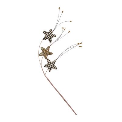 Add delightful dimension and a bit of glam to the Christmas tree or a wreath with this shooting star pick. It’s done in gold and Courtly Check® and finished with a beaded spray.