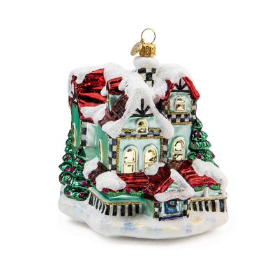 Add to the memories year after year with our collection of beautiful glass ornaments, including this snow-covered cottage, decorated with touches of Courtly Check®. This ornament is mouth-blown and hand-painted in Eastern Europe by some of the world’s most talented glass artisans and is presented in a keepsake gift/storage box.