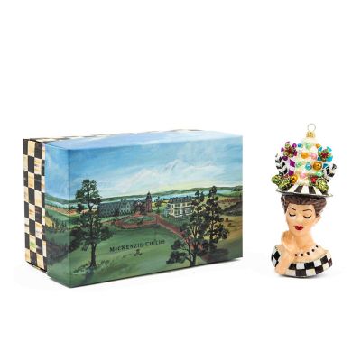Add to the memories year after year with our collection of beautiful glass ornaments, including this 1950s-ish lady head vase, decorated with touches of Courtly Check®. This ornament is mouth-blown and hand-painted in Eastern Europe by some of the world’s most talented glass artisans and is presented in a keepsake gift/storage box.