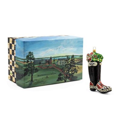 Add to the memories year after year with our collection of beautiful glass ornaments, including this black and glitter Wellie, decorated with red tartan and touches of Courtly Check®. This ornament is mouth-blown and hand-painted in Eastern Europe by some of the world’s most talented glass artisans and is presented in a keepsake gift/storage box.