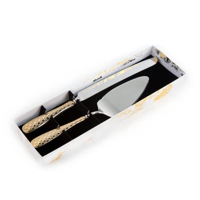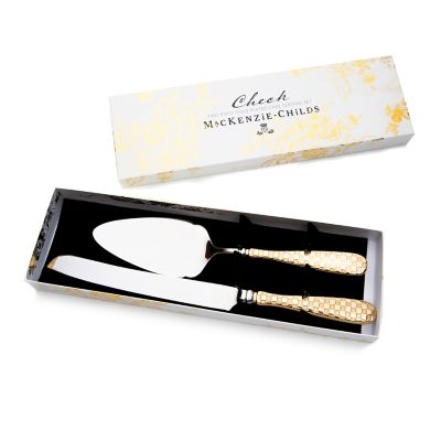 Serve guests in style with our Gold Check Cake Serving Set. Made of durable stainless steel and plated in 24K gold, the set includes a cake knife and cake server. Handy to have around the house or as a thoughtful hostess gift, these utensils detailed in our signature checks will be an indispensable part of every supper or special occasion.