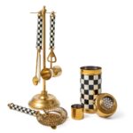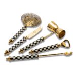 Our Gold Courtly Check 3260 Barware lets you prepare perfect drinks every time, from Moscow mules to martinis. Available in a jigger, strainer, bottle opener, mixing spoon, and knife made of gold-toned stainless steel with an enamel coating of our color-dragged Courtly Check on the handles. Matching stand available to store each piece.