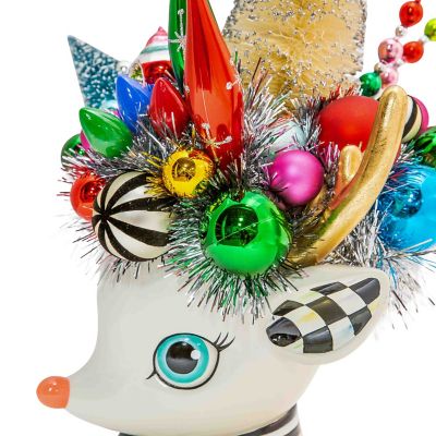 Dolomite ceramic. Tinsel, Sisal Trees, plastic ornaments and baubles. Ribbon. Pieces may vary due to the handmade nature of each product. Imported.