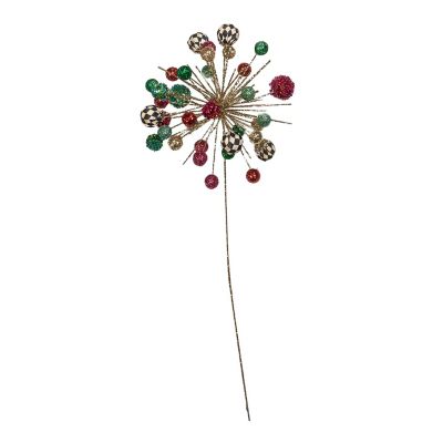 Add delightful dimension to the holiday arrangements with this wired starburst stem, accented with glittered balls of pink, red, and aqua, and Courtly Check®.