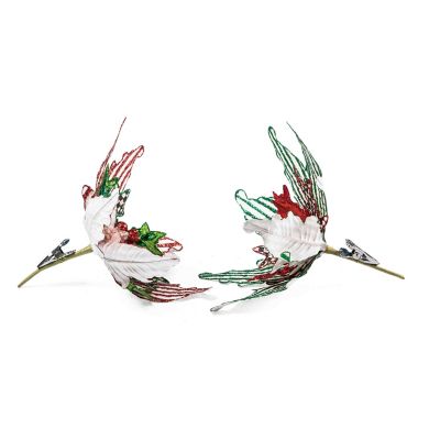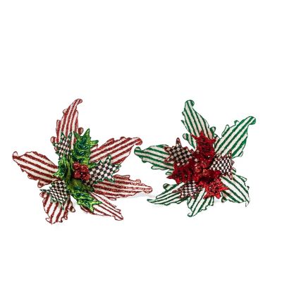 Add delightful dimension to the Christmas tree or a wreath with this set of two glittered poinsettia clips, done in red stripes and green stripes, trimmed with Courtly Check® leaves and encrusted berries.