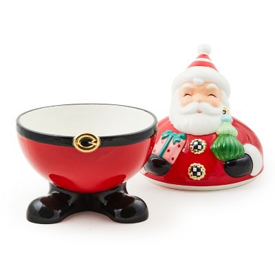 Bake holiday spirits bright with this hand-painted Santa cookie jar. Made of ceramic, this jolly elf is decorated head to toe with sweet details. It makes a great gift, too, especially when filled with tasty treats.