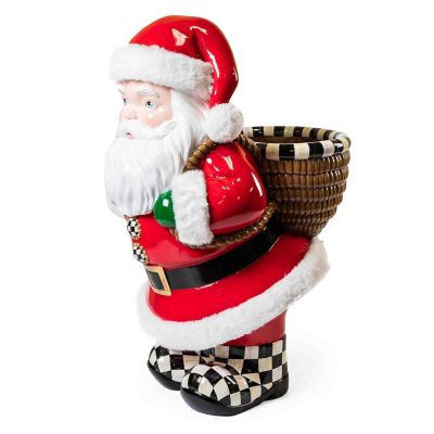 Deck the entry with this retro Santa planter, hand-painted in holiday hues and decorated with faux fur and Courtly Check®. The basketlike backpack is perfect for holding a potted poinsettia.