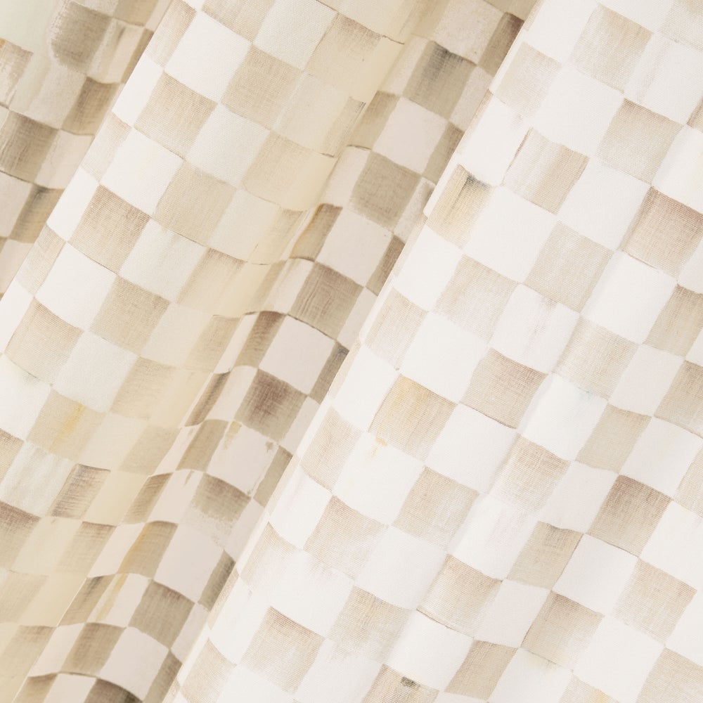 Our Mocha Check 84″ Grommet Curtain Panel is the perfect way to dress up your windows with a touch of style and personality. It features our warm neutral check pattern printed on high-quality cotton with durable metal grommets at the top.