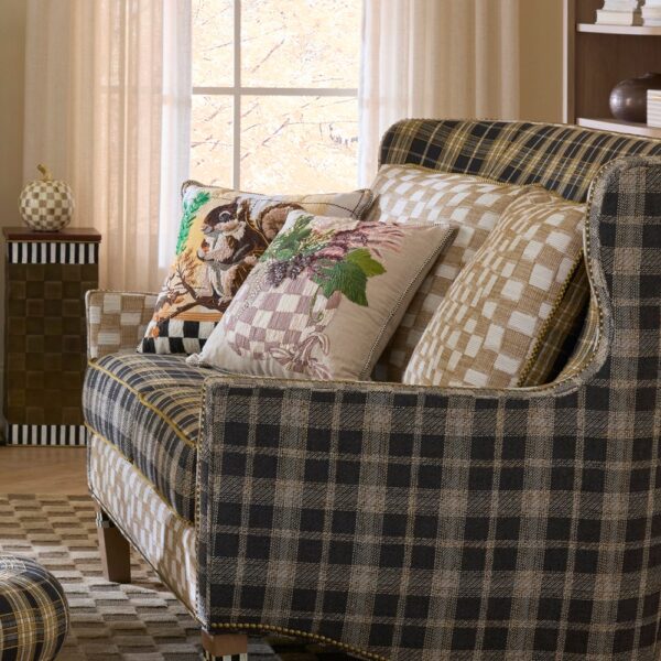 Make a statement on the sofa with this unique Harvest Pumpkin Bouquet Throw Pillow. It features a checked pumpkin topped with seasonal greenery, finished with glass beading on a cozy cotton base.