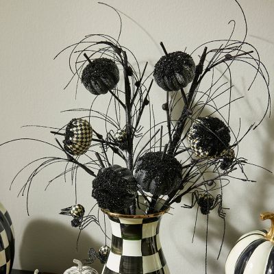 Make your happily haunted home simply spook-tacular with this spray, featuring three pumpkins and four dangling spiders, some embellished with Courtly Check®, which are attached to a glittered black branch. It’s perfect for embellishing a Halloween floral arrangement.
