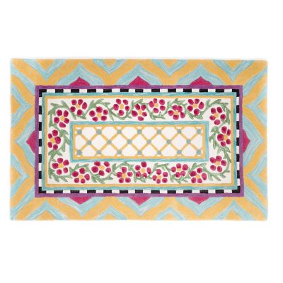 The 3′ x 5′ Hitchcock Field Rug features one of our classic Taylor ceramic patterns, bringing its color and charm to your floors. This wool-blend, hand-tufted rug is a mishmash of florals, scallops and stripes, and the pattern pays tribute to the vibrant colors of summer on our farm. More interest comes from the weaving technique, where the blossoms are sculpted slightly higher, adding a bit of dimension.