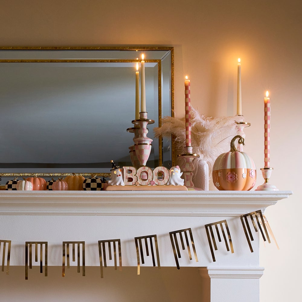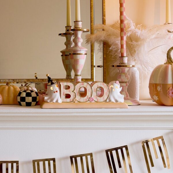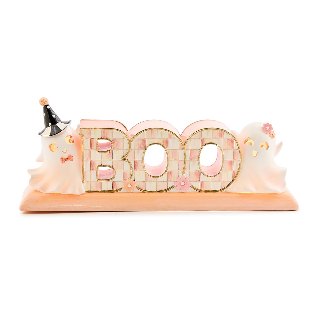 Add a bewitching touch of elegance to Halloween with the Hocus Pocus Illuminated BOO Ghost Letter Set. These softly glowing Rosy Checked letters spell out “BOO” and are framed by darling ghosts on both sides. A spellbinding addition to your Halloween decor.