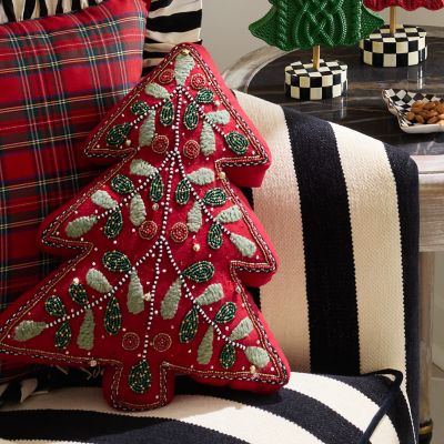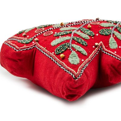 Holiday Red Tree Shaped Embroidered Throw Pillow
