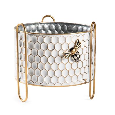 Bee inspired by this small tin planter, featuring an embossed honeycomb pattern and a decorative, hand-painted bee. Pair it with the matching large honeycomb tin planter.