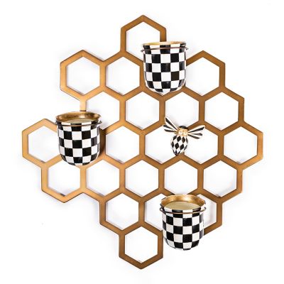 Bee inspired by this honeycomb-shaped, metal planter that holds three hand-painted Courtly Check® pots and is trimmed with a removable magnetic bee accent.