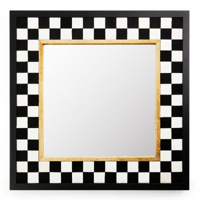As you head out the door, why not “check” yourself out with this square beveled mirror, featuring cow hair-on-hide checks with stained oak veneer around the mirror window. Multiples of this mirror can form a variety of interesting arrangements.