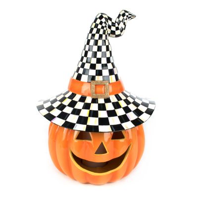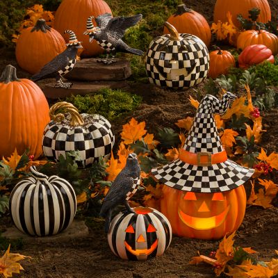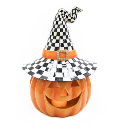 Harvest some style from our extraordinary pumpkin patch. We’re all aglow for the Illuminated Happy Jack. Painted in classic orange and topped a Courtly Check® witch’s hat, this stylish piece really shines when the battery-operated flicker LED light adds a whole new dimension to the things that go bump in the night.