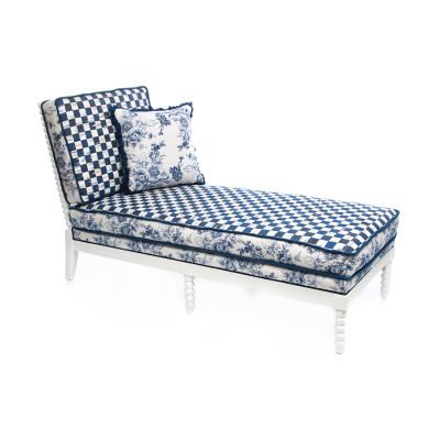 We love reinterpreting the classics—with a bold attitude, of course. Our Indigo Villa Outdoor Chaise is a modern take on parlor style, now for the patio, in weather-ready materials and iconic MacKenzie-Childs patterns. We start with rugged-yet-chic white resin frames and dress them up in Sunbrella® outdoor cushions in eye-catching Royal Check and Wild Rose Royal Toile. Equally stylish on the lakeside deck of a beloved family camp as in an urban townhouse sunroom, this suite brings the indoors out with panache.