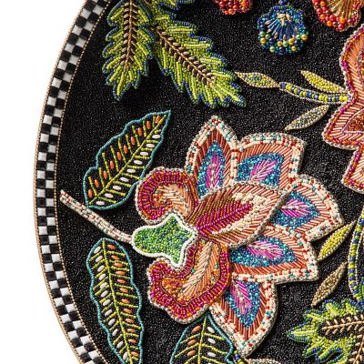 Add a touch of luxury to your home with this tray, embellished with our Jaipur pattern that’s done entirely in beads, finished with a check border. An accompanying metal stand lets you display it like the beautiful art object that it is.