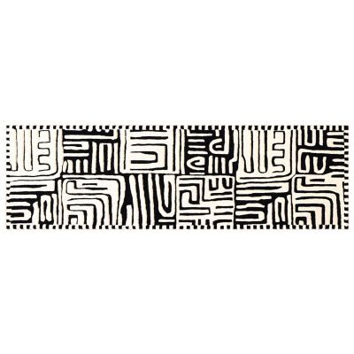 This 2’6″ x 8′, New Zealand wool-blend rug features dimensional tufted and sheared black and ivory patterns inspired by traditional African Kuba cloth. So versatile, it’s sure to complement many of our collections.