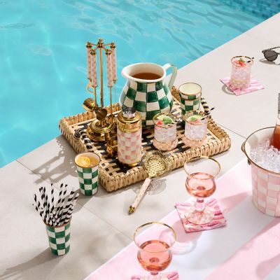 Woven rattan with brass logo plate. Pieces may vary due to the handmade nature of each product. Imported.