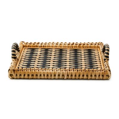 Make serving stylish with this rectangular tray featuring an intricate pattern of contrasting woven rattan. Handles add to the ease of carrying it wherever it’s needed—indoors or out.