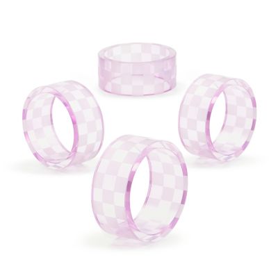Decorate your tabletop with this set of four lavender check napkin rings, crafted from etched glass. Pair with our Sterling Check plating or other iconic dinnerware and Everyday place settings for the perfect tabletop collection.