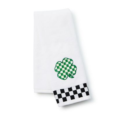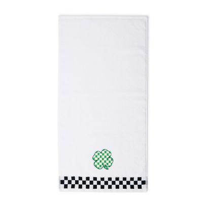 Give your bath an instant makeover with this hand towel. Made of 100% cotton terrycloth, it features a green check clover and is trimmed with a black and white check border.