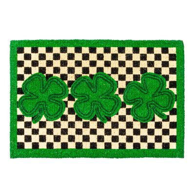 Extend top-of-the-morning greetings before you even open the front door with this coir entrance mat, featuring a trio of green clovers on a background of checks, trimmed with a green border. This biodegradable mat is made of coconut husks and printed with water-based inks.