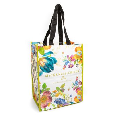Our MacKenzie-Childs Bag for Life is just that. It’s your reusable go-everywhere, haul-everything tote that’s both pretty and practical. Made of water-resistant polypropylene and decorated with our classic patterns, it’s ideal for holding everything from fruits and veggies from the farmers market, books from the library, or even beach towels and swimsuits. We’re sure you’ll find even more ways to use this dependable and delightful bag.
