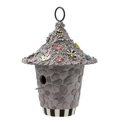 Give your favorite birds of a feather a stylish home tweet home. This one, made of resin with an all-weather concrete finish, features a stone-etched body topped with dimensional, hand-painted florals and a Courtly Check® and Stripe dragonfly.