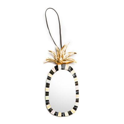 Our Marquee Pineapple Mirror makes a welcoming statement by highlighting the pineapple, the symbol of hospitality. Edged with Courtly Check®, it’s topped with a metal gold leaf crown with a rawhide loop for hanging.