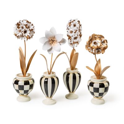 Simple and chic, our Marquee Potted Hyacinth Flower features a dimensional metal flower in a Courtly Stripe pot, accented with gold leaf. Mix and match it with the other Marquee potted flowers, including the primrose, allium, and star flower.