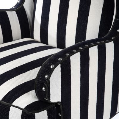 Put your showstopping style up in lights. The Chenille Stripe Marquee Wing Chair is a versatile striped silhouette that mixes and matches with solids and patterns. It has a domestic hardwood frame, wrapped with upholstery-weight chenille, and is accented with pewter nailhead trim. Our exclusive fabric decking is underneath the loose seat cushion.