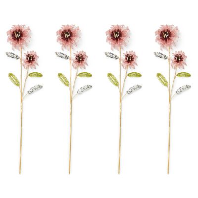 Add a bit of autumn elegance to wreaths and arrangements with this set of four beaded flower stems. Each features two mauve bugle bead flowers with rhinestone centers, trimmed with beaded leaves in black, white, and green.