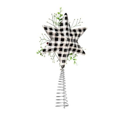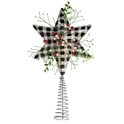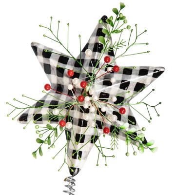 Top the tree with this dimensional, checked Capiz star tree topper that’s accented with holly leaves and berry and pearl accents.