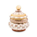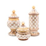Equal parts decorative and practical, our Mocha Check ceramic canisters bring signature style to storage. Perfect for organizing everyday essentials while adding a cheerful accent to any space.
