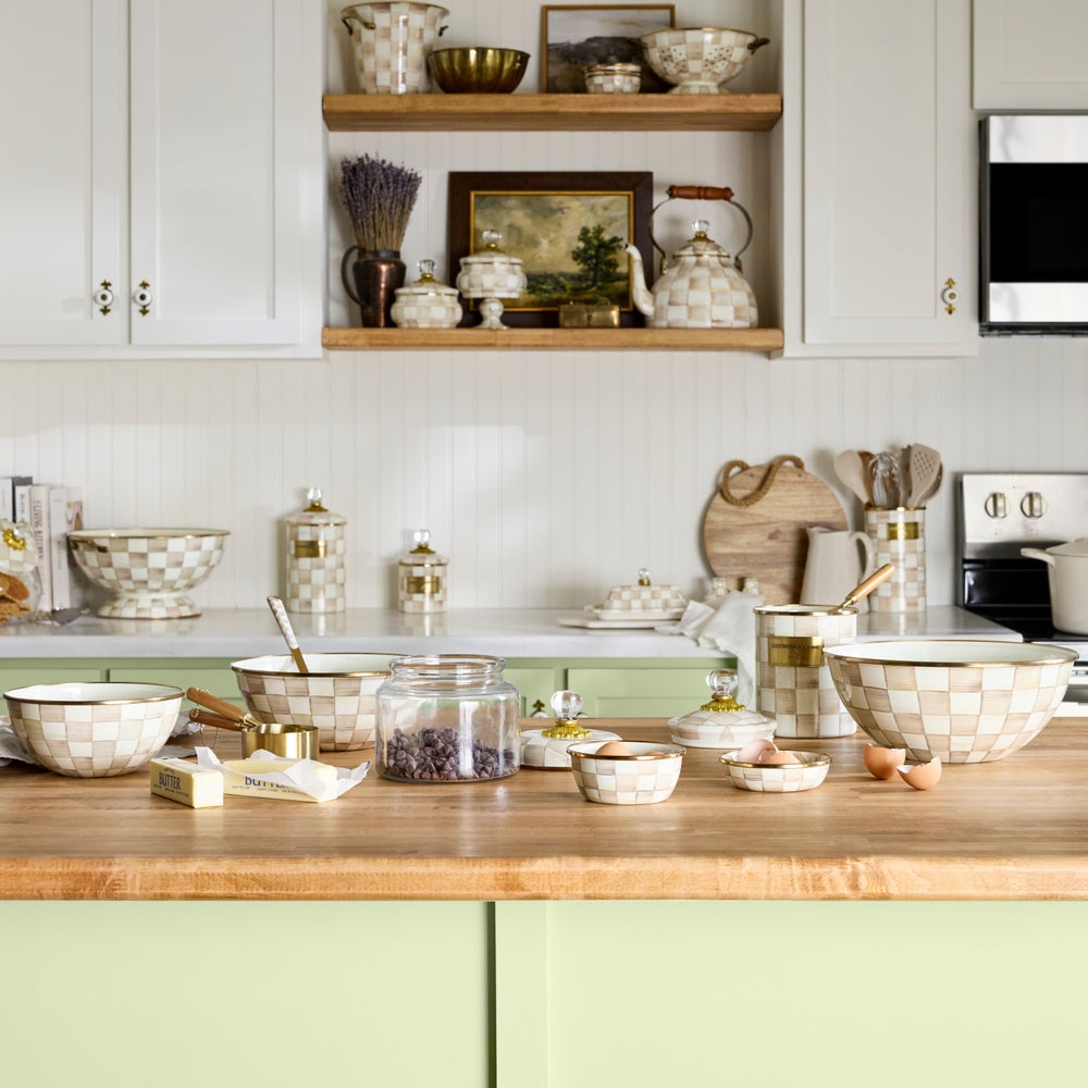 Our Mocha Check Enamel Everyday Bowl is a durable bowl that’s a must-have in the kitchen. Decorated in coffee-colored checks over a versatile steel underbody.