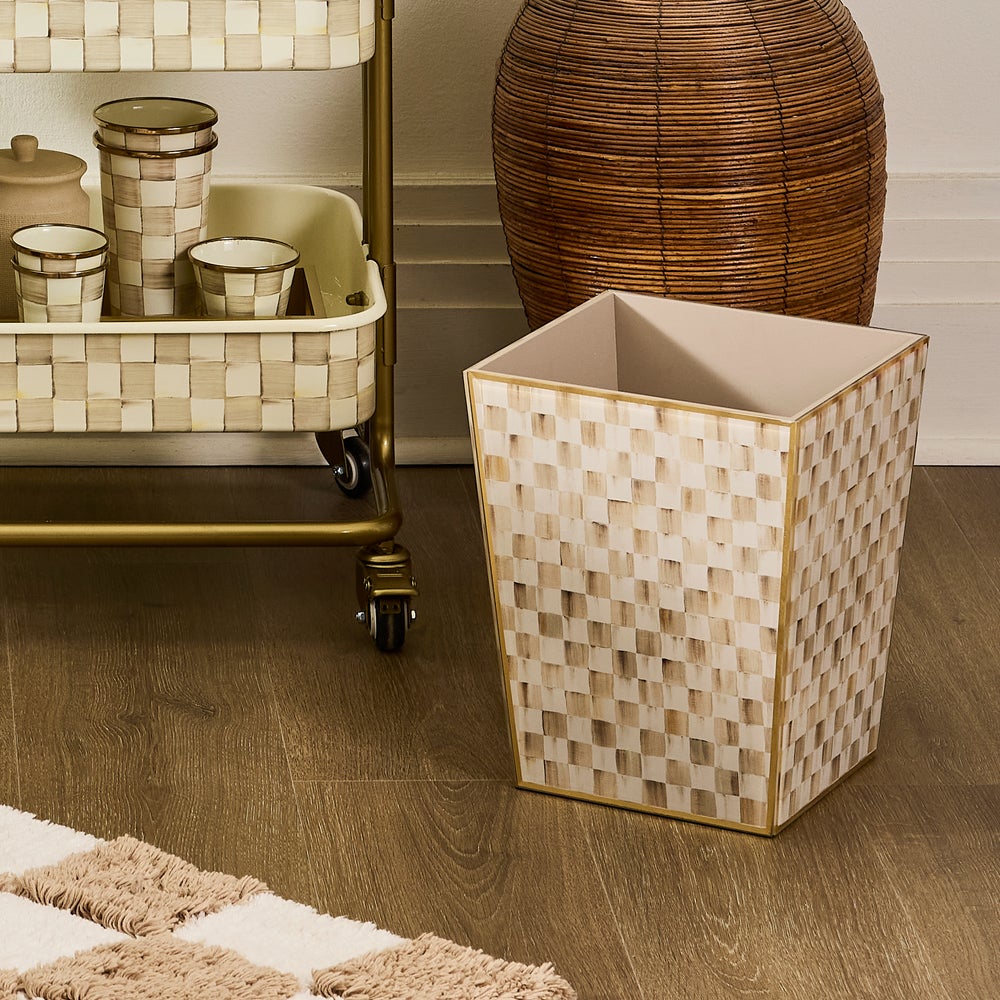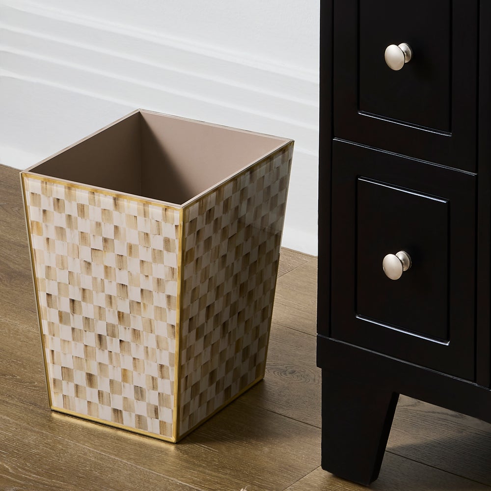 Bring a fresh elegant take on our neutral Mocha Check to your bathing space with our Mocha Check Glass Bath Collection.