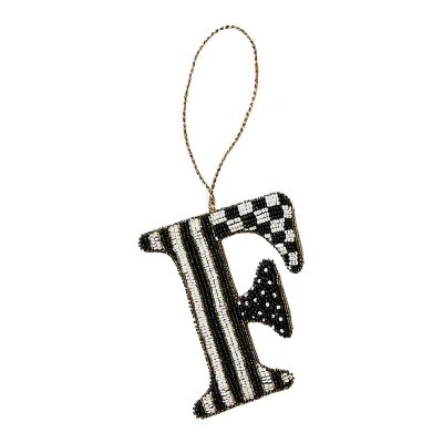 Give the Christmas tree your distinct style with this monogram ornament done entirely in black and white beads that hangs from a golden cord. Perfect for the tree, of course, and also terrific for embellishing packages, place settings, and more.