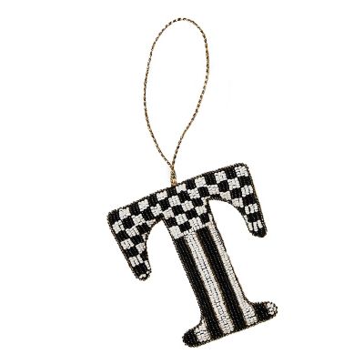 Give the Christmas tree your distinct style with this monogram ornament done entirely in black and white beads that hangs from a golden cord. Perfect for the tree, of course, and also terrific for embellishing packages, place settings, and more.