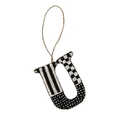 Give the Christmas tree your distinct style with this monogram ornament done entirely in black and white beads that hangs from a golden cord. Perfect for the tree, of course, and also terrific for embellishing packages, place settings, and more.