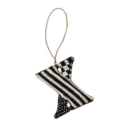 Give the Christmas tree your distinct style with this monogram ornament done entirely in black and white beads that hangs from a golden cord. Perfect for the tree, of course, and also terrific for embellishing packages, place settings, and more.