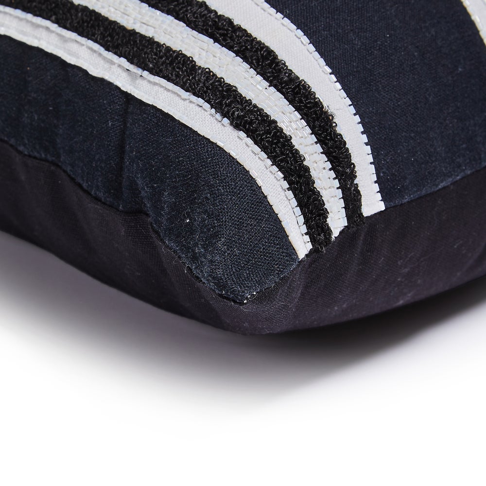 Put your stamp on style with this monogram throw pillow. The black and white letter is digitally printed and then embellished with beading and chenille embroidery. It’s trimmed with black piping.
