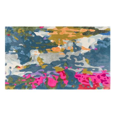 This wool-blend 2’3″ x 3’9″ rug is done in a relaxing mix of abstract watercolor hues. It’s also sheared, giving it a smooth yet lush surface.
